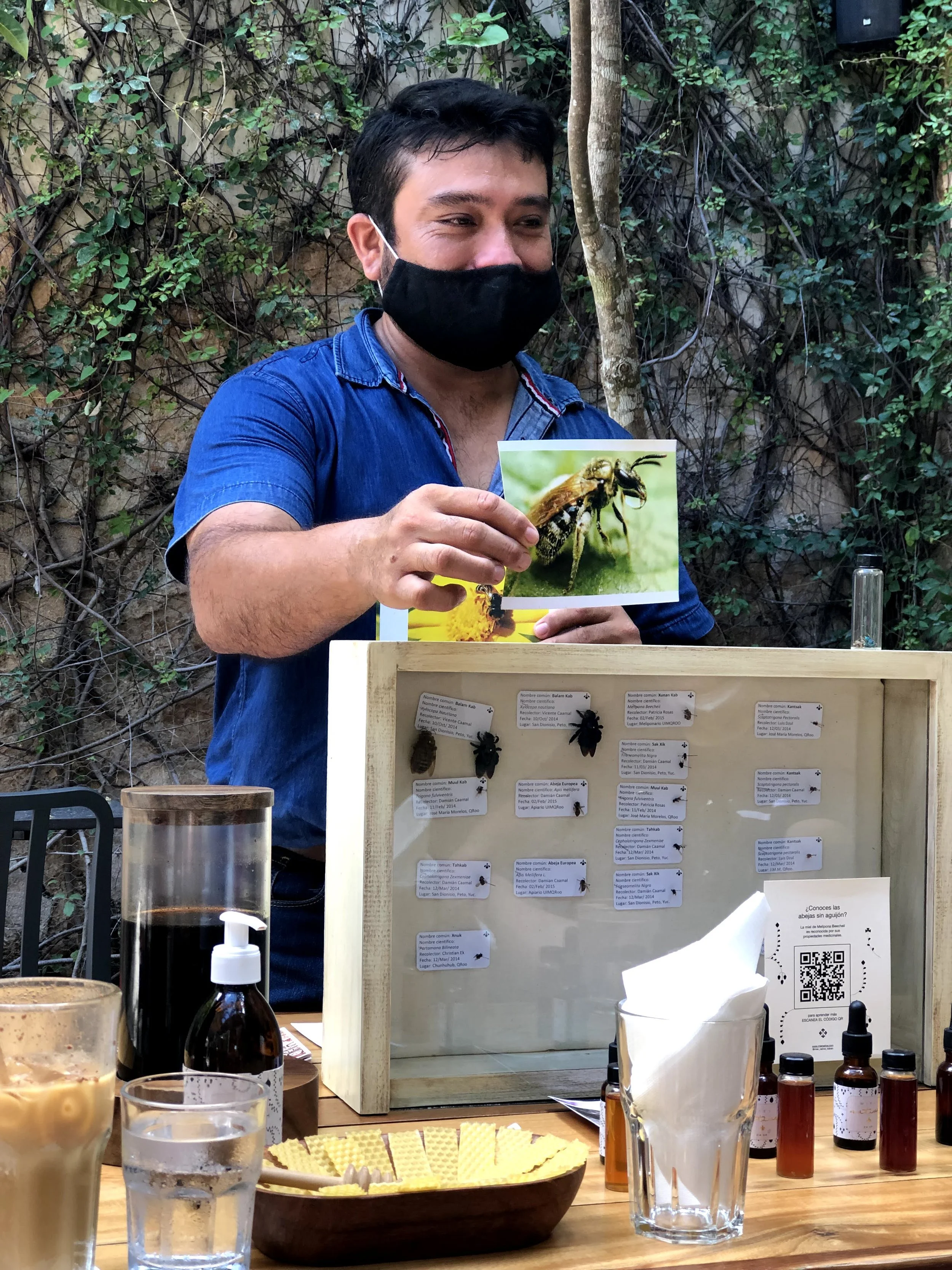 La experiencia es liderada por Andrea o Rodrigo, fundadores de Miel Nativa Kaban, quienes comenzarán por compartir información increíble sobre el mundo de las abejas y la miel que producen. Descubrirás que, efectivamente, no hay un sólo tipo de abeja. Y (casi) todo lo que creías conocer sobre las abejas no es verdad. No todas las abejas son color amarillo con negro. No todas pican. No todas producen miel. Y existen miles y miles de tipos diferentes.